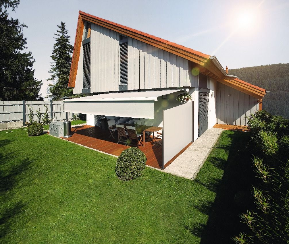 Gönnen Sie sich ein Maximum an Schutz: Vor tiefstehender Sonne, neugierigen Blicken oder einem lauen Sommerlüftchen. Unsere Seiten-Markise ist mit nur einem Handgriff kinderleicht herausziehbar.