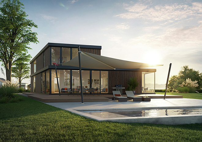 Schöner Relaxen mit Sonnenschutz: Das kompakte Sonnensegel überzeugt durch eine leichte und moderne Optik, vielfältige Gestaltungsoptionen sowie durchdachte Details. Zum Beispiel sind technische Komponenten wie der Motor komplett unsichtbar in der Tuchwelle versteckt. Ein besonderer Eyecatcher für Garten und Terrasse.