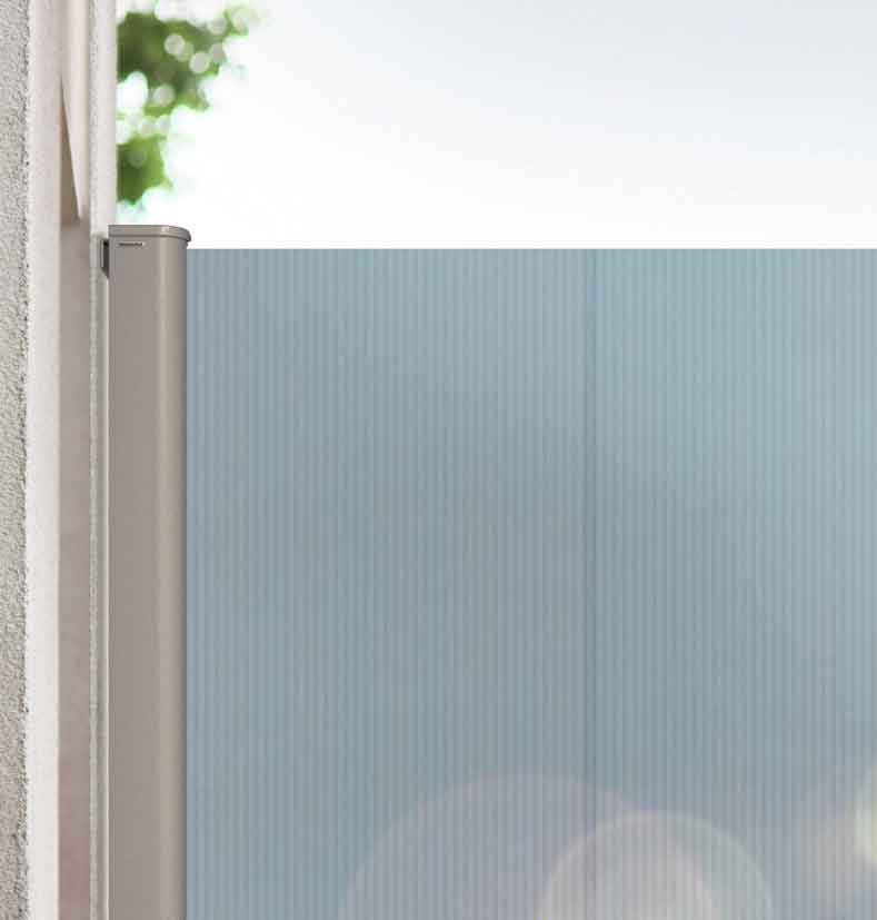 • Schräger Tuchverlauf passt sich optimal an Terrassen-Markise, Pergola-Markise oder Terrassendach an
