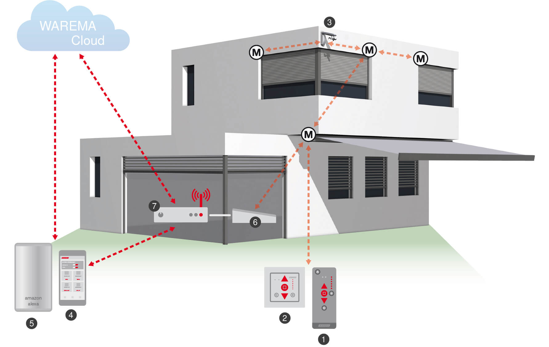 EWFS und WMS, die Funksysteme von WAREMA, vereinen Komfort und hervorragende Ausbaufähigkeit. Sie steuern Ihren Sonnenschutz oder das Licht bequem per Funk. Individuelle Steuerungsanforderungen werden durch beide Systeme mit modernster Technik verwirklicht. Ideal zum Nachrüsten dank unkomplizierter Leitungsverlegung.